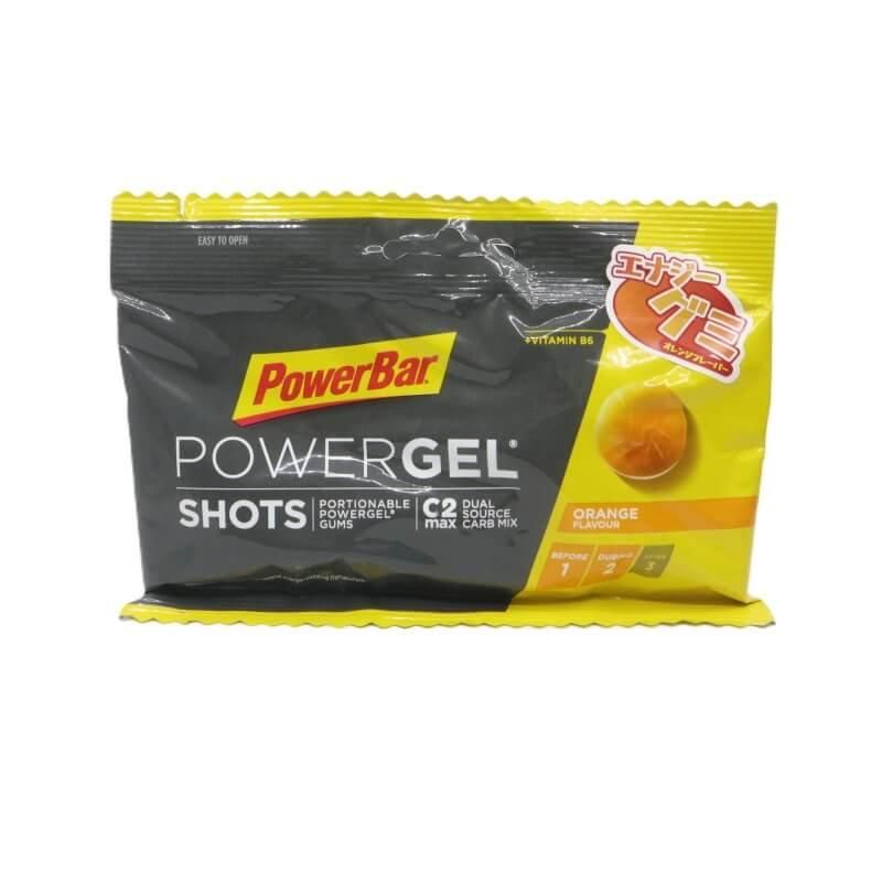 パワージェル・ショッツは1袋約9粒入りのグミで4〜5粒で一般的なエナジージェル1つ分のエネルギー補給ができます。