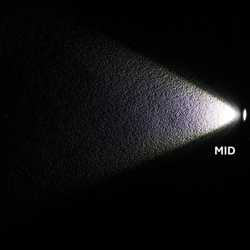 光束(lm) ブースト:750 / パワー:350 / ミドル:100 / ロー:25