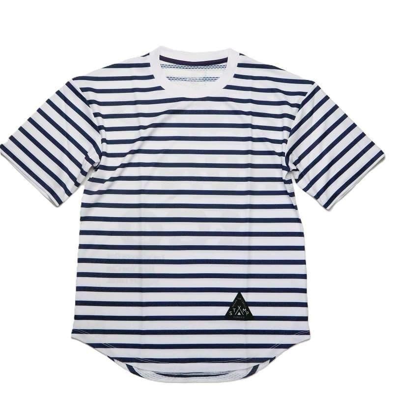 STAMP RUN&CO_STAMP WIDE TEE WHITE/NAVY BORDER