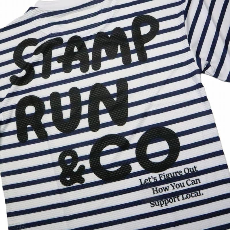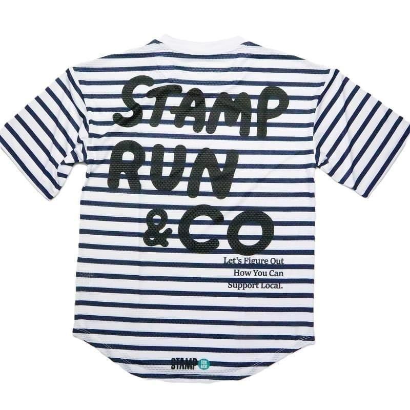 大阪のランニングウェアブランド「スタンプ」。スタンプのキャッチ−なグラフィックは、広く一般受けするデザインを余儀なくされる大手メジャーブランドでは踏み入れられない個性とセンスが感じられる一着です